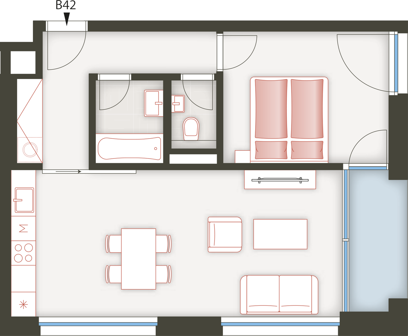 Architektura logické geometrie využívá ušlechtilé nadčasové materiály. Zvenčí je to primárně režné zdivo, které zajišťuje vizuální propojení všech tří bytových domů uzavřeného rezidenčního komplexu.
